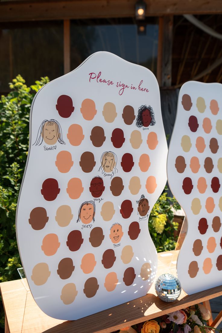 - Ustaw tablicę przy wejściu/księdze gości, zapewnij markery (czarne, złote, białe).
