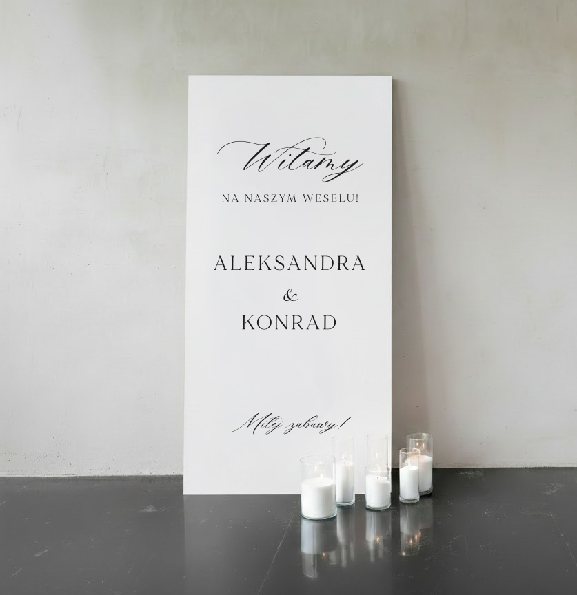 • Imponujący rozmiar: Wymiary sprawiają, że tablica jest widoczna z daleka i stanowi centralny punkt dekoracji. To idealne tło do pamiątkowych zdjęć z gośćmi i doskonały sposób na stworzenie “efektu wow”.